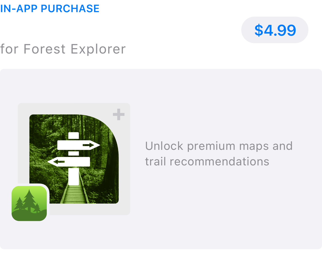 When a user starts an In-App Purchases on the App Store, they are taken into your app to continue the transaction. Consider presenting the payment sheet as soon as they are in the app to make the process of completing their purchase as easy as possible. Avoid unnecessary interstitials and messaging, as each extra step you require may decrease the likelihood that the user will complete the purchase. If you are offering an auto-renewable subscription, you’ll need to explain how auto-renewal works in the purchase flow within your app.