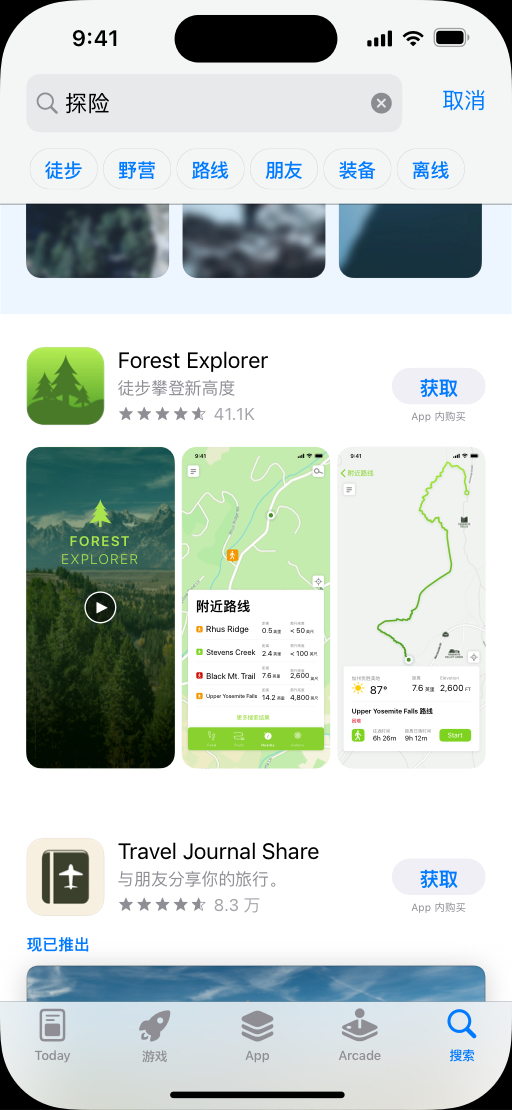 App 内购买项目也可能会显示在搜索结果中,并有可能被推荐到“Today”、“游戏”和“App”标签上。用户在这些位置轻点 App 内购买项目时,会直接转到你的产品页面;在该页面中,他们不但能了解 App 的描述,查看截屏和 App 预览,还能点击购买 App 内购买项目。如果用户在点击购买你的某个 App 内购买项目时还未在他们的设备上安装相应的 App,系统会提示他们下载或购买这款 App来完成交易。