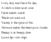 The best test of whether a font is successful is to view examples that are typical of the expected use. Look at examples of what you intend to print. If a font is expected to serve as a screen font on a 72 dpi device, look at sample test at 10 and 12 point on the screen. Other tests can be useful, however, in isolating particular problems.The waterfall, a line of text that is repeated at sizes that decrease by one pixel per em, makes weight jumps more apparent. A waterfall with screen fonts is shown in Figure 25. Figure 25 shows the same text on a high resolution printer.