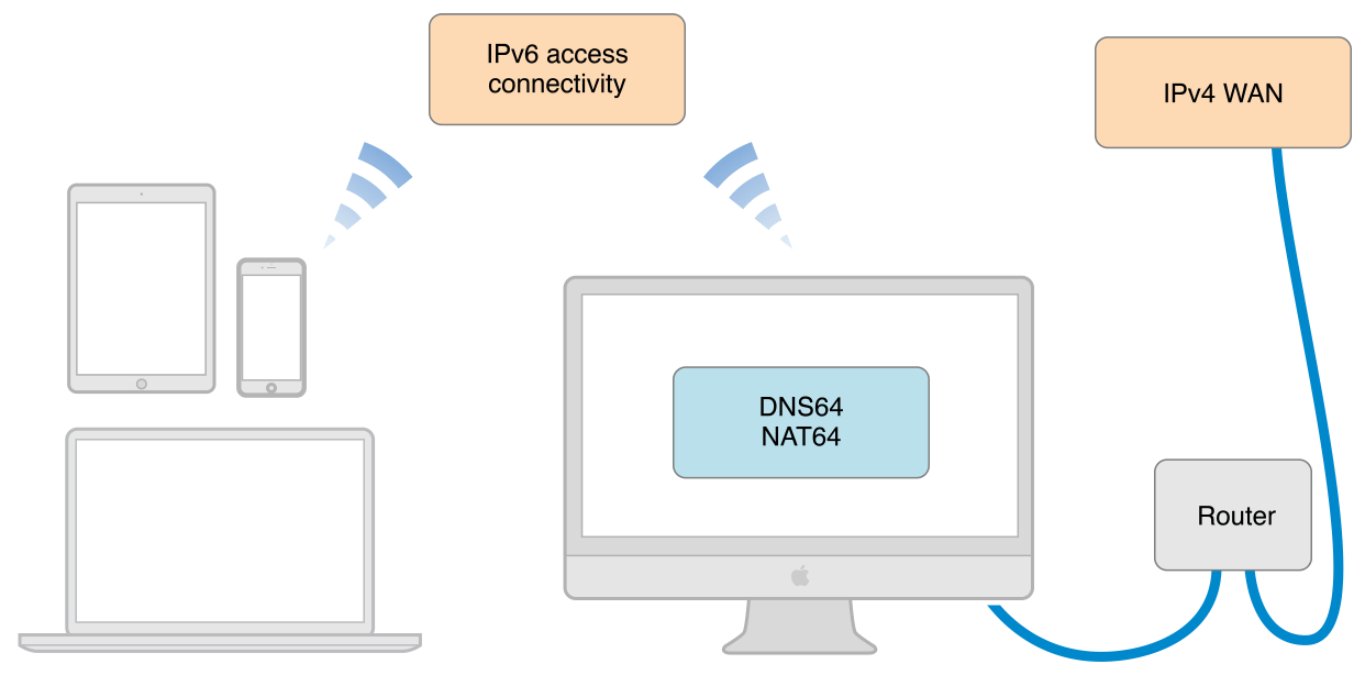 A Mac-based IPv6 DNS64/NAT64 network is a useful tool for testing your app in an IPv6 environment. However, because it always generates synthesized IPv6 addresses and transmits data on the WAN side using IPv4, it’s not an exact replica of the networks supplied by service providers. These networks (as well as the one used during App Review) do allow for direct IPv6-to-IPv6 connectivity. If your server is misconfigured, this might result in your app behaving differently in regular use or during review than it does in your local testing. It might even result in an App Review failure that is hard to reproduce in your own environment.