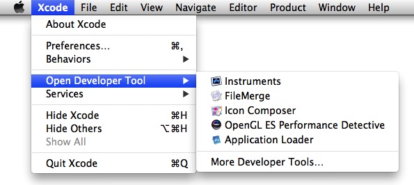 The Xcode 4.3 installation reorganizes other key development tools and allows launching them using the Xcode > Open Developer Tool menu (Figure 1).