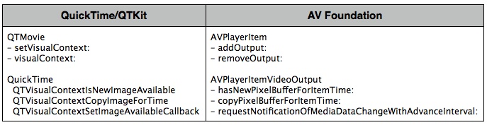 Figure 3  Media Playback using QTKit and AV Foundation.