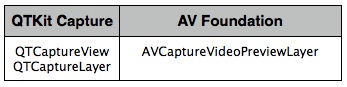 Figure 12  Core Capture Classes for QTKit and AV Foundation.