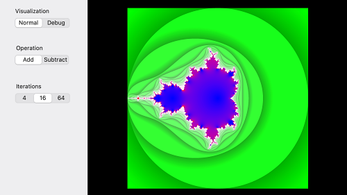 View sample codeDefine custom shader behavior at runtime by combining shader functions and preferentially linking to others in a dynamic library. This sample stitches together many small functions into a function stitching graph and builds a function to calculate an iteration in the Mandelbrot set from this graph.