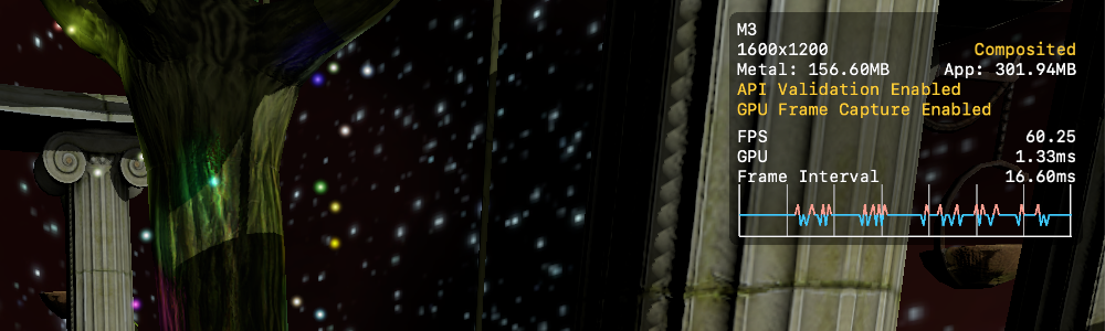 You can monitor key graphics statistics directly in your Metal app with the Metal performance HUD, making it easy to spot performance problems and find the best scope to capture in Xcode or Instruments.